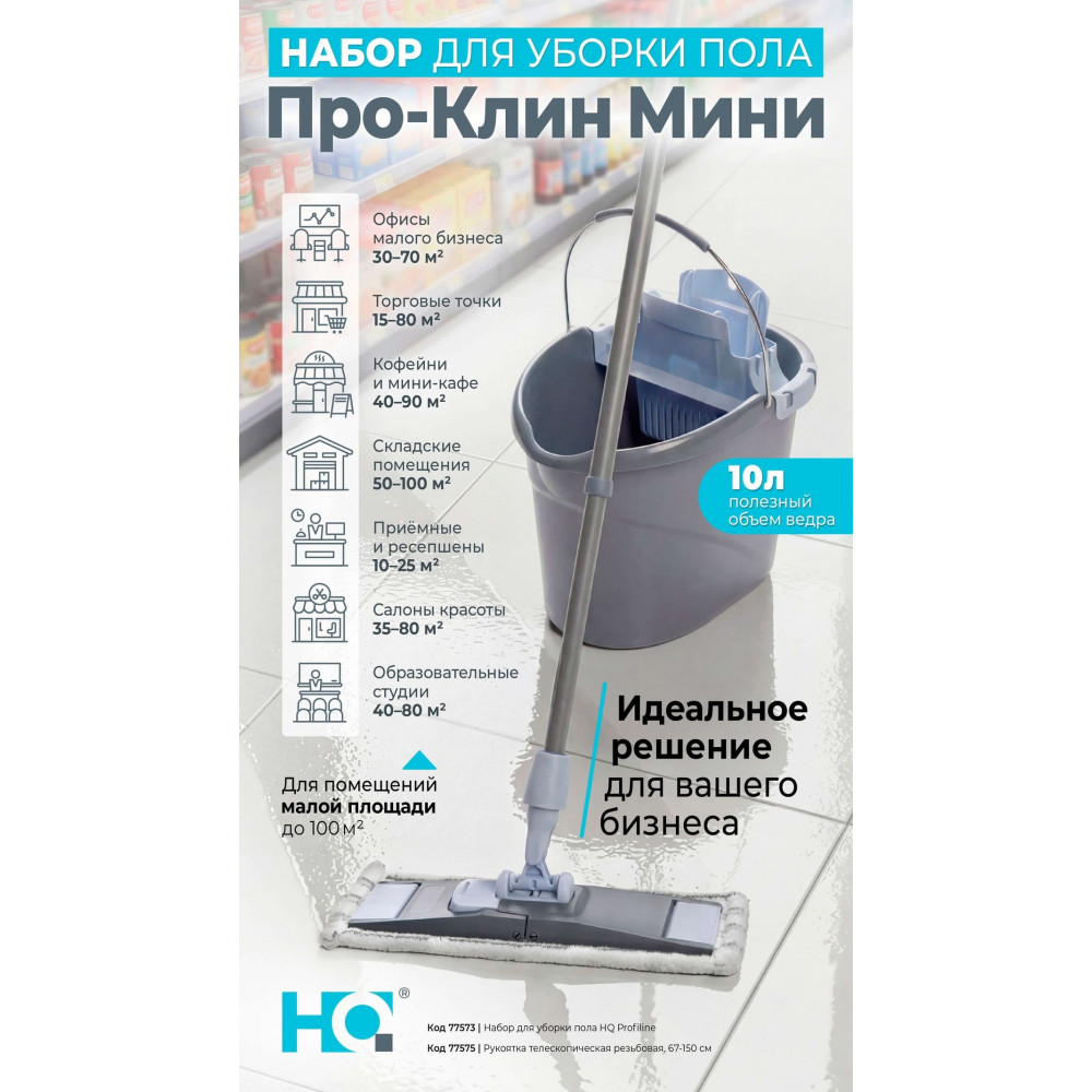 Набор для уборки пола Про-Клин Мини, ведро 10 л с отжимом, держатель, моп HQ Profiline, арт. 77573